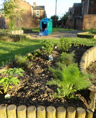 Costs, to date, have been covered by donations from residents and an initial donation from local employer Aviva who, through York Cares, provided a team of 15 volunteers who put in a day’s work in March 2014 to clear the garden ready for planting.  We had significant funding for fruit trees in place in March 2014, but have been told by the Council we are not allowed to plant any trees on the site until the planning is finalised for a proposed road and bridge that may cut through the park to create access for development of the York Central site.